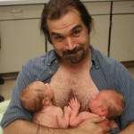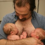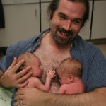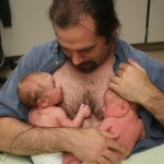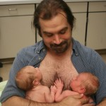 Dad with Alexander on the right and Dominic on the left – Two can be quite an armful!
