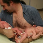 I struck gold on Wednesday afternoon with one of the nurses who let me hold the boys together! Dominic and Alexander got to touch for the first time that afternoon around 1 PM for almost an hour and then again when Dad came to the NICU that night.