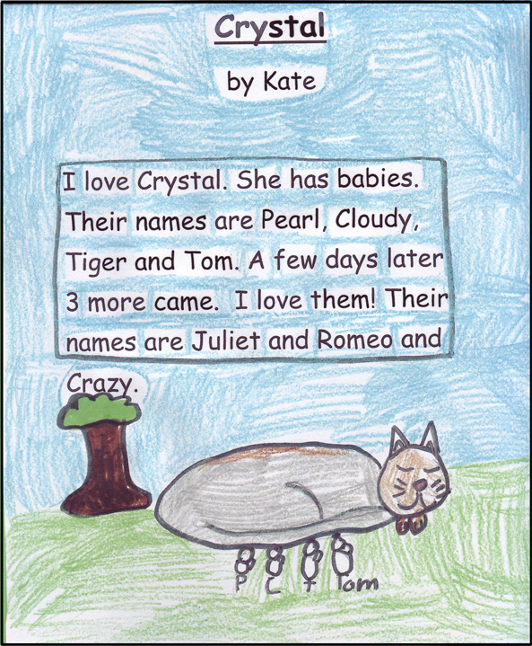 Our niece Kate loves cats. Recently, she drew a lovely picture and wrote a short story about her cat Crystal.