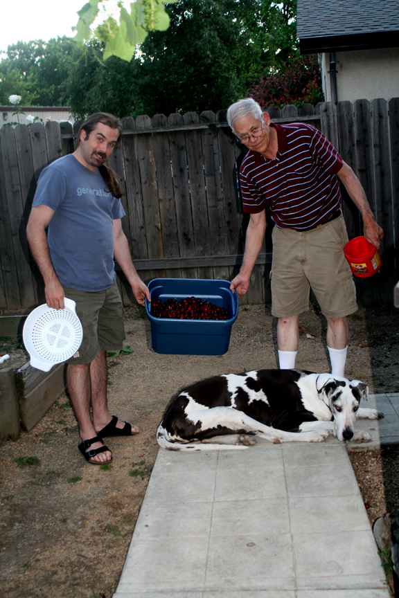 It was amazing to have my dad arrive and for him to see the growing belly in person. Plus, Shakti was so excited that she barely let me hug him for 20 minutes, and then she quickly fell into her old habits of following him wherever he would go. We took his minivan full of stuff over to the new house to unload that night. Dad also loves bing cherries, so it was fortunate that the cherries on the cherry trees at our new place were quickly becoming ripe and already tasted yummy.