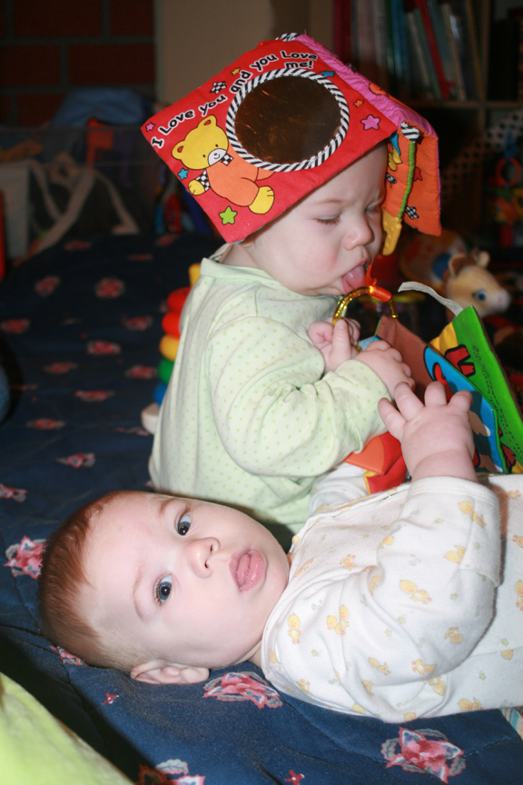 Tuesday night, Alex slept through the night, and Dom only woke up once – when he had a big poopy diaper. I cleaned him up, nursed him (yeah, shame on me), and got him right back to bed. Wednesday night, both Alex and Dom slept through the night. WooHoo! Yesterday, Alex took a 3 hour nap for his second nap (and didn’t need a third one) while Dom took three hour-long naps.
