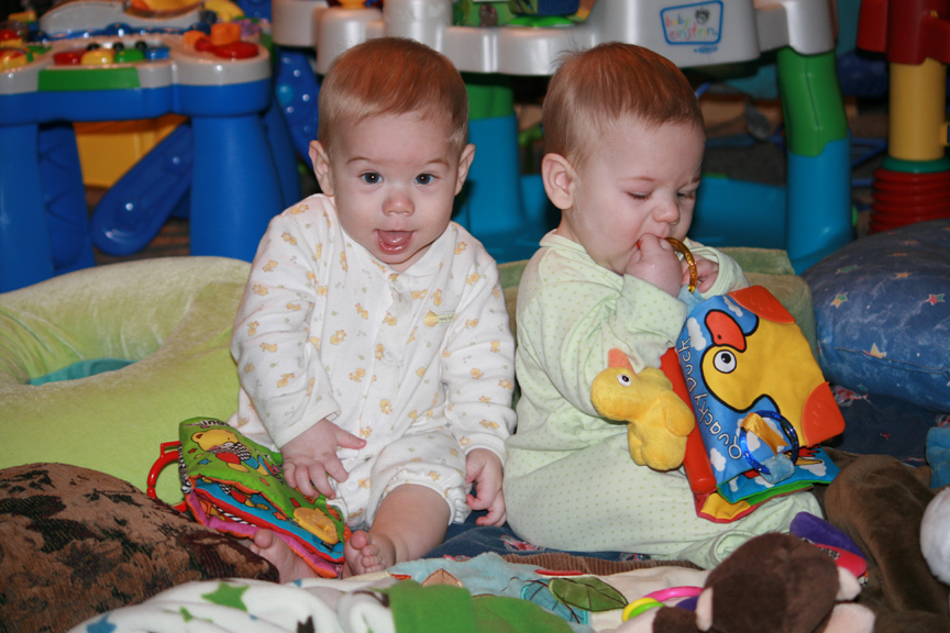 The boys have started vying for the same toys. It is most often Alex who looks longingly over at his brother’s toys and then tries to steal them. In fact, you can sometimes create a loop by giving Dom the toy Alex discards to steal a new one from Dom. Suddenly, Alex wants that toy. It is new and shiny and must be better since his brother has it. Sometimes, the tides are turned, and it is Dom stealing from Alex. So far, they haven’t truly clashed over a toy, as the one being stolen from doesn’t really seem to mind.Sitting