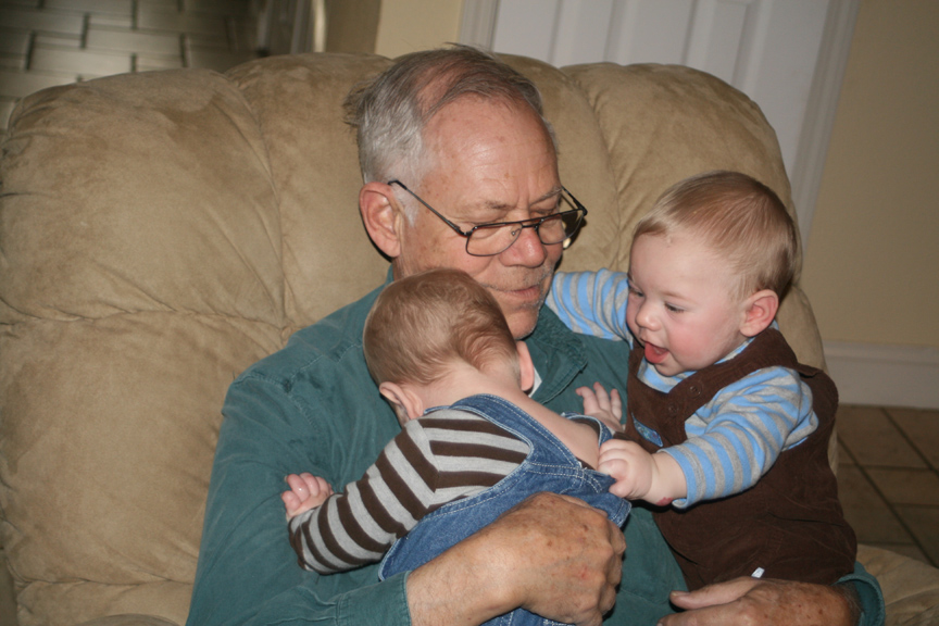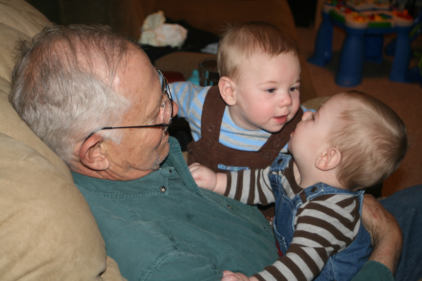 With Papa leaving in the dark, cold hours of the morning, the boys’ goodbyes were said Tuesday night. They got to share a little time on Papa’s lap in addition to all the rest of the attention they received during the day. We’ve all really enjoyed and appreciated having Papa out for a visit, and Dom and Alex have loved being teased by him as well as playing and chatting with him. Alex will especially miss untying his shoelaces, and they’ll both miss pulling clothes pins off his shirt pockets, learning to give high-fives, and hearing his rich, deep voice. Their little lives were enriched by all the new experiences he introduced them to and the additional one-on-one time.Mom’s life was also made easier with another person to help care for the little ones and run errands. In the evenings, when Papa and I would sit in the living room with him reading a book and me working on my dissertation, it reminded me of my high school years when my dad always seemed to have something to do late into the night until I finished my homework and headed for bed – the companionship of presence. We’ll look forward to your next visit here or our next visit to Oklahoma!
