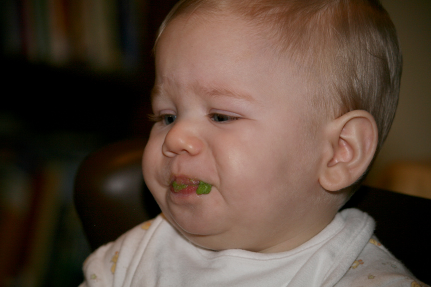 Today, the boys got to try green beans for the first time. While Dom wasn’t sure what he thought of the first bite, he quickly warmed up to the green beans and cleaned his bowl. Alex, on the other hand, decidedly did not like the green beans. He started making a gagging sound as he spit them back out. Needless to say, he got to skip solid foods for the night.