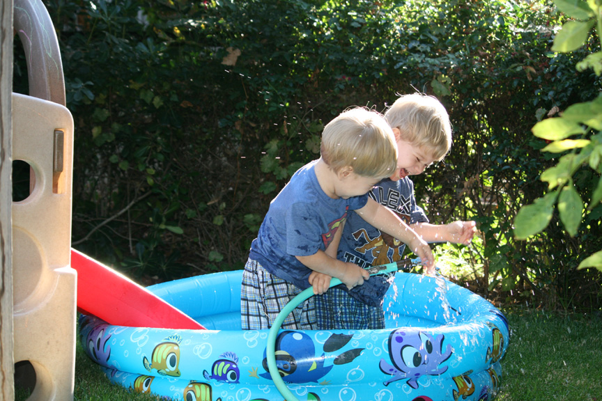 Last night and tonight when we put the boys to bed Puck encouraged Dom and Alex to tell each other goodnight. Both nights when Puck suggested Dom say, “Good night, Alex.” He replied, “Good night, Dom.” Alex said, “Good night, Alex” last night, but tonight he actually said, “Good night, Dom.” Then, after we finished tucking everyone in and headed out the door, Alex and Dom continued telling each other “Good night” and giggling. Puck and I grinned at each other as we listened to them over the monitor. Such cuties!